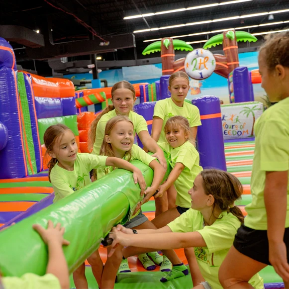 We believe that freedom means flexibility. That’s why our park is open to kids of all ages and abilities. From toddlers discovering the joy of bouncing to older kids racing through obstacle courses, everyone finds their own way to play at 2 Hours of Freedom™.