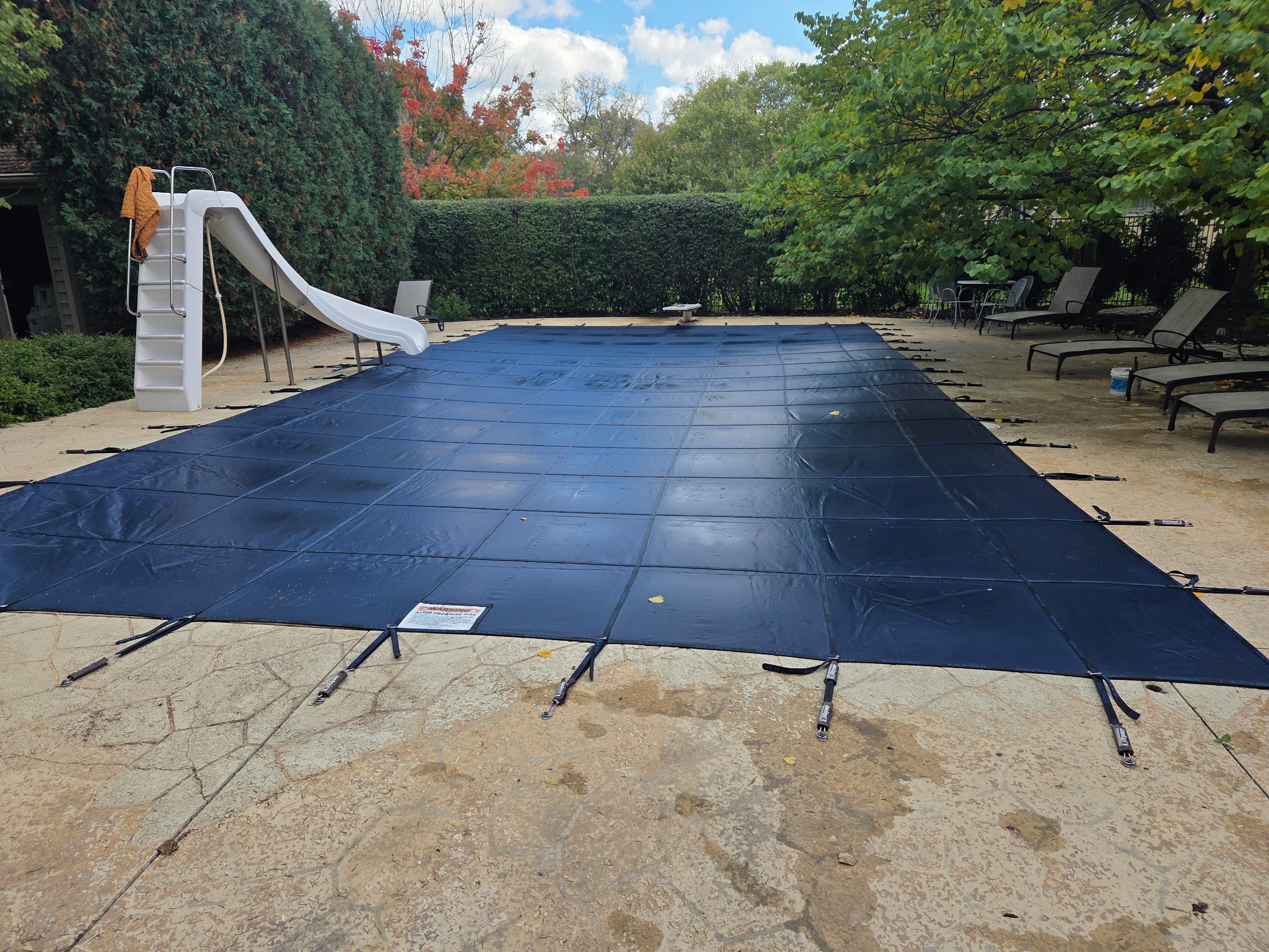 With everything ready, we moved on to the final stage — installing a durable winter pool cover. For our pool closing services in Arlington Heights, IL, we always use high-quality covers designed to withstand harsh weather while keeping debris out. Once secured, we double-checked every fastener and seal, ensuring the pool was completely protected. The homeowner could already see the difference a professional closing makes.
